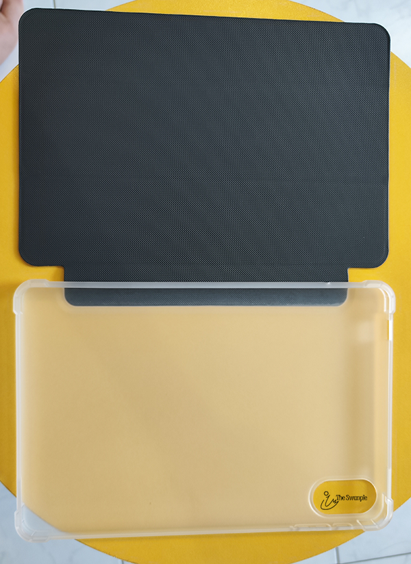The case cover came with semi transparent back and the case doesn't feels flimsy and tablet can easily be remove and put onto the silicone casing.